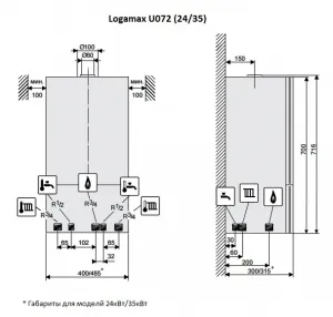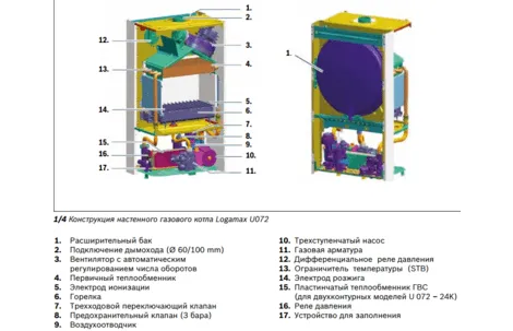 Установки линейки Logamax U072 являются двухконтурными, способными самостоятельно приготовить ГВС. Для этой функции нужно подключение дополнительного оборудования.