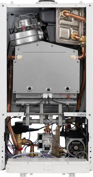 Ключевой элемент котла - это высокоэффективный теплообменник, изготовленный из чистой меди по технологии "Oxygen-Free", что обеспечивает его надежность. Конструкция также включает конденсационный экономайзер для увеличения тепловой эффективности и модулируемую горелку, поддерживающую широкий диапазон мощностей. Надежность и долговечность котла дополнительно гарантируются благодаря гидравлическому блоку, выполненному из качественной латуни.