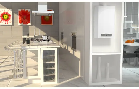 Установка представляет собой двухконтурный газовый котел, способный самостоятельно не только обогреть помещение, но и обеспечить ГВС.